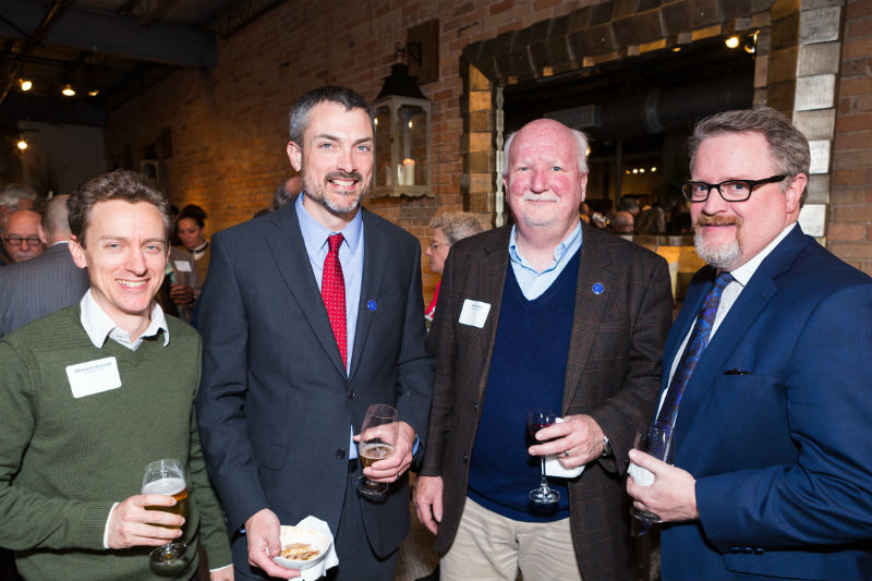 (L-R) Tikkun Gottschalk, James Ellis, Bill Christy and Doug Tate enjoy the music, delicious food and beverages at Jazz for Justice. (Photo by Michael Oppenheim.)